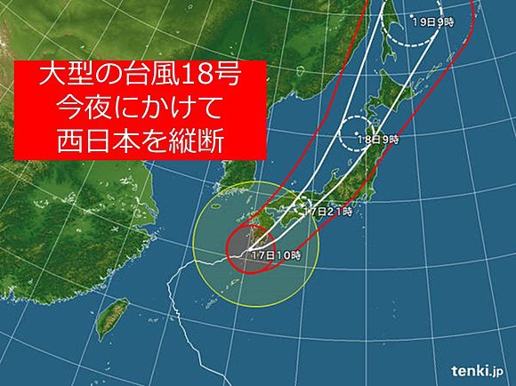 ところが、西向きに進んでいた台風18号が、東シナ海で偏西風に乗ってブーメランのように北東方向に急カーブ。そして、九州、四国、近畿を直撃する予報に変わった。