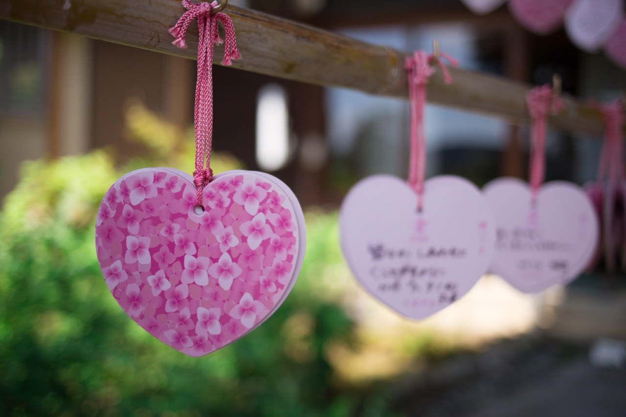 三室戸寺はあじさいの名所で、物語でもハート形のあじさいが登場するのだが、2ヶ月遅かった。あじさい園は見る影もなく、ハート形のあじさいの絵馬を見つけるのが精一杯だった。